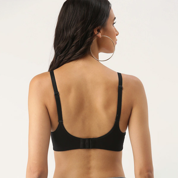 Black solid full-coverage T-shirt bra Lightly Padded and Non-Wired seamless cups Regular straps and back closure, Back style: Regular, Feature: All Day Comfort.
