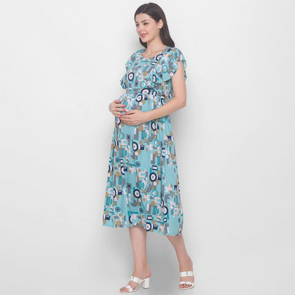 Blue Floral Maternity Midi Dress