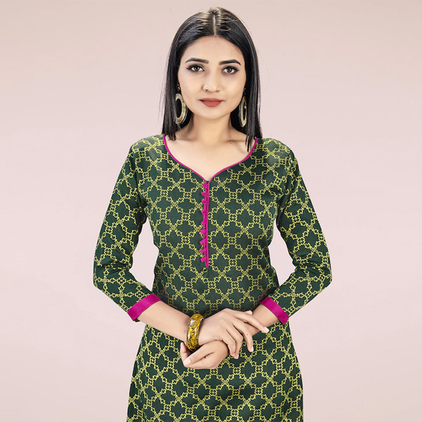 Green and pink woven design unstitched dress material