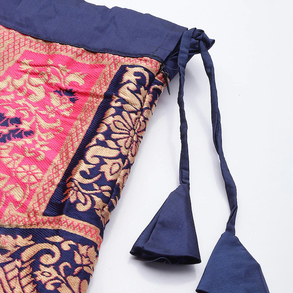 Pink & Navy Blue Woven Design Semi-Stitched Lehenga & Unstitched Blouse with Dupatta