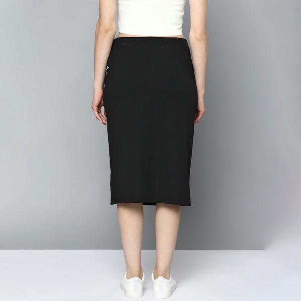 Women Black Pure Cotton Solid Ruched Straight Skirt