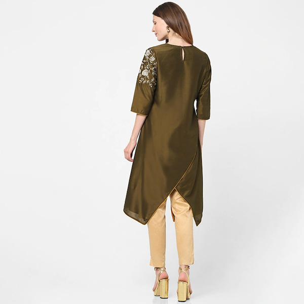 Women Olive Ethnic Motifs Embroidered Thread Work Kurta